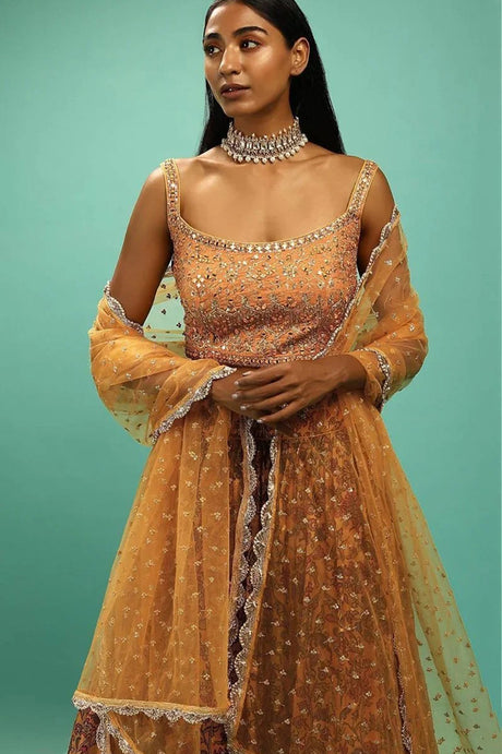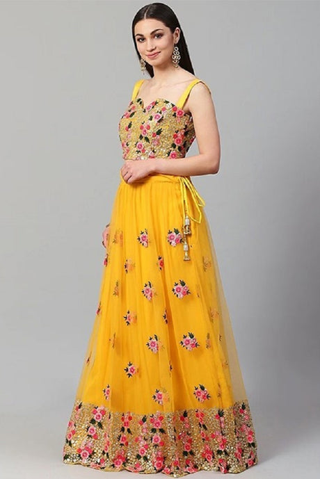 Yellow Floral Embroidered Net Lehenga