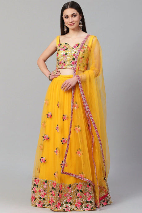 Yellow Soft Net Embroidered Lehenga Choli
