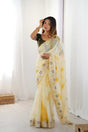 Elevate your wardrobe with our exquisite Saree a masterpiece crafted to add timeless elegance to your style. Made from Tissue this saree offers a perfect mix of comfort and sophistication. Adorned with Embroidered it showcases intricate craftsmanship that speaks volumes of tradition and artistry. Perfect for Party this saree is a versatile addition to your collection, ensuring you stand out effortlessly. Pair it with elegant Jewelry, for a glamorous look. Add Clutches or Potli Bags and complete the ensemble with Wedges & Heels , making it a perfect choice for any event. Make a statement and embrace the elegance of Saree Today