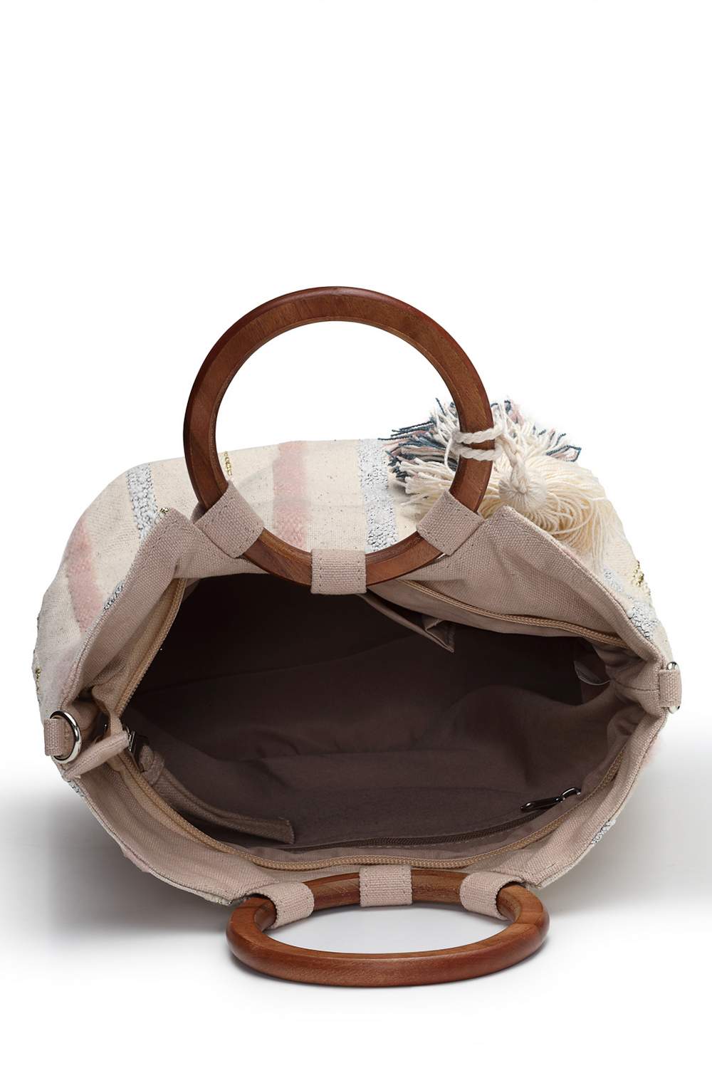 Off White Striped Cotton Hand Bag