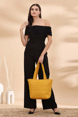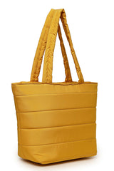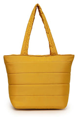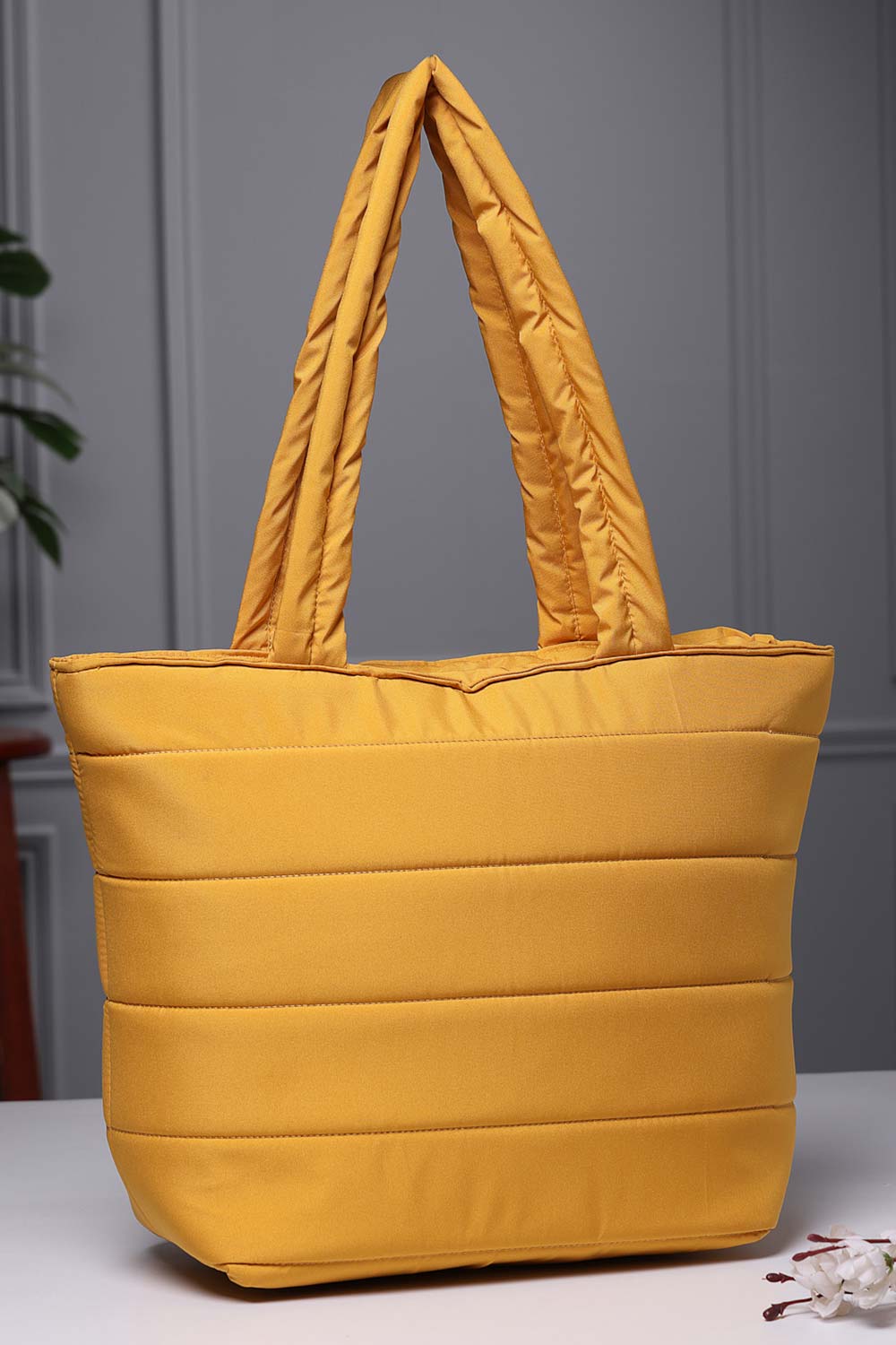 Saffron Yellow Polyester Striped Quilted Hand Bag