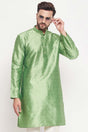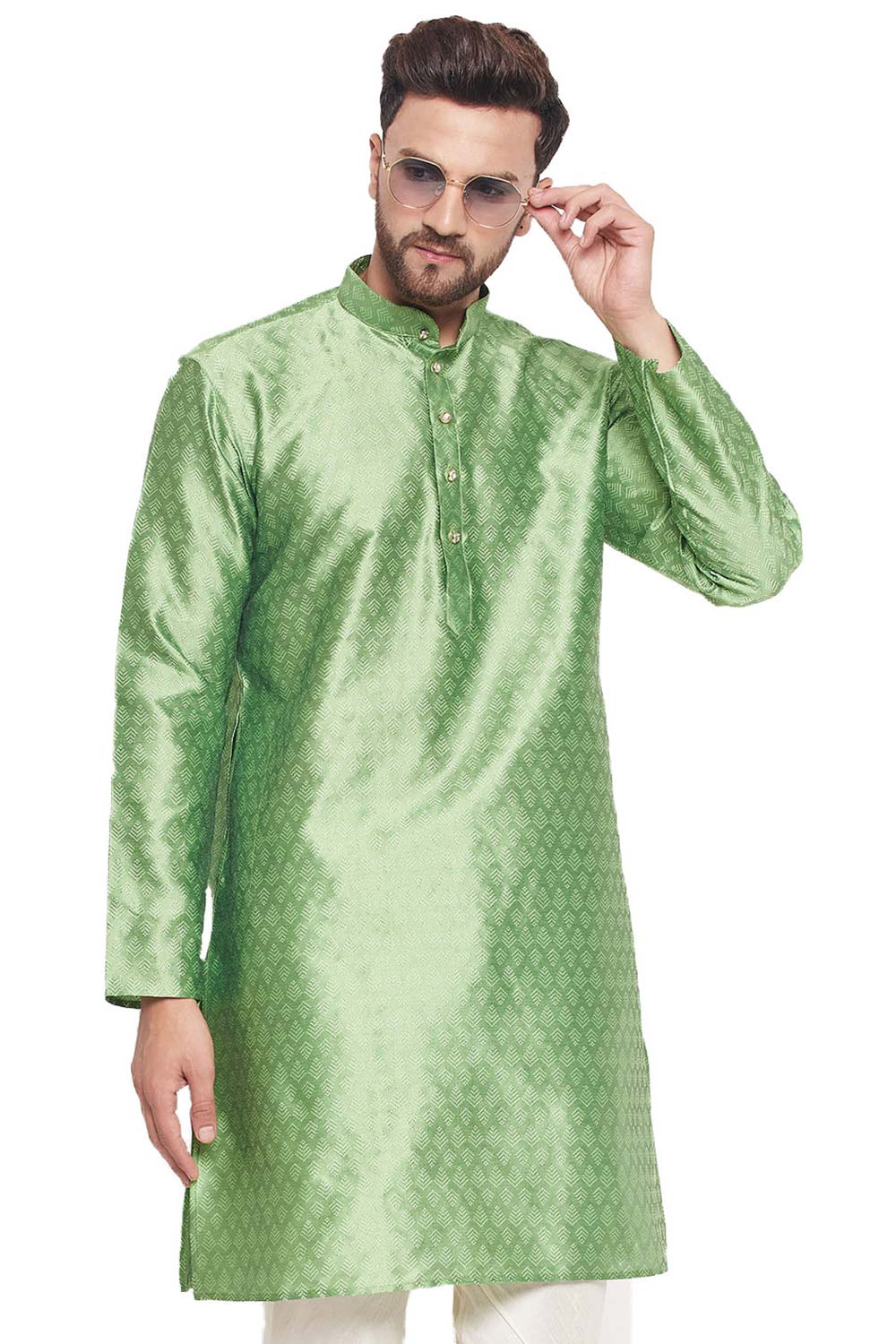 Men's Mint Green Silk Blend Ethnic Motif Woven Design Short Kurta (Size: 38)