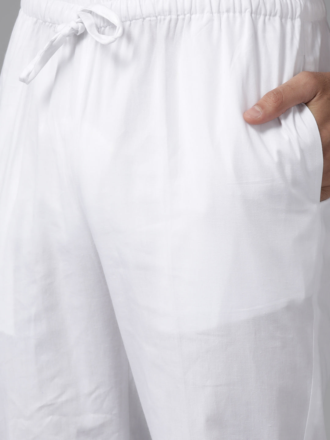 Men White Chikankari Embroidered Straight Kurta With Pyjama