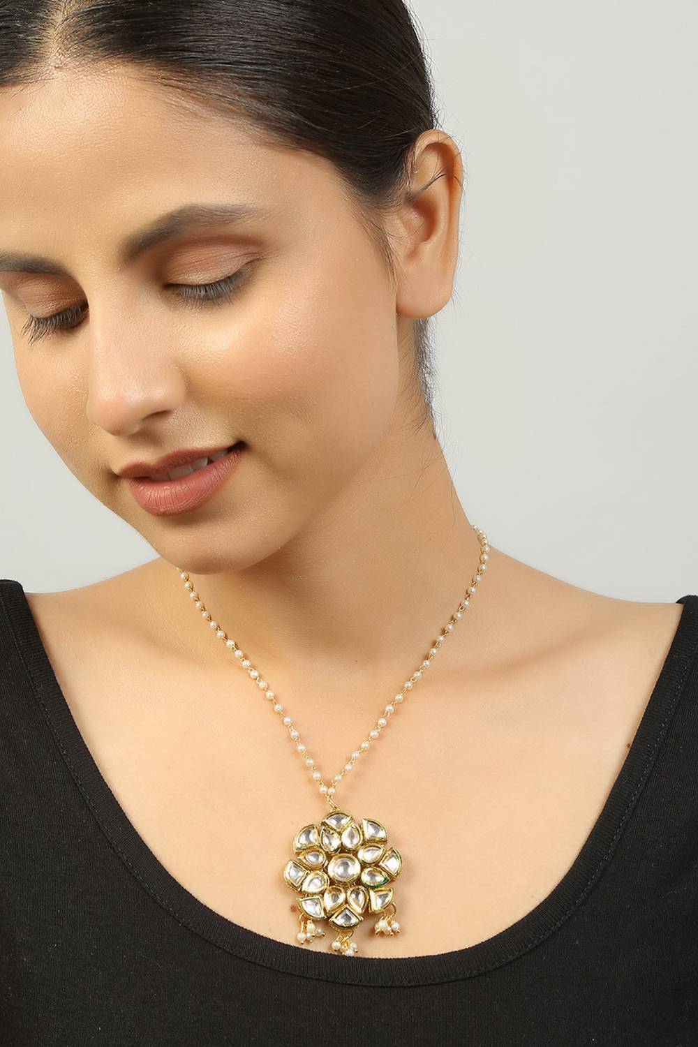 Golden White Gold Tone Kundan Alloy Necklace