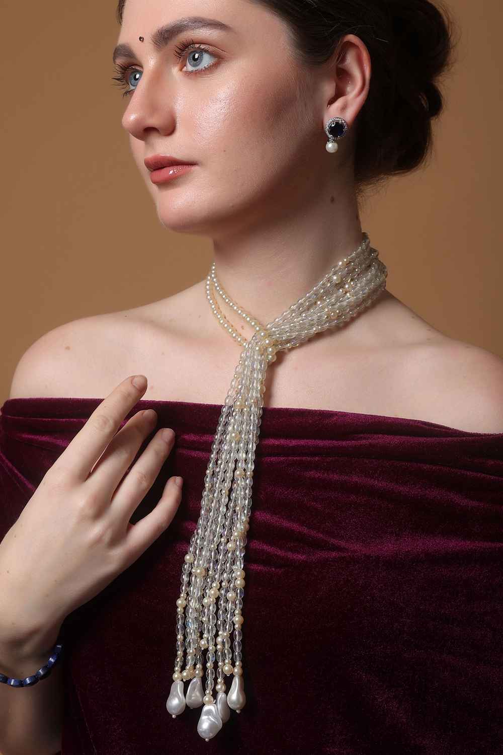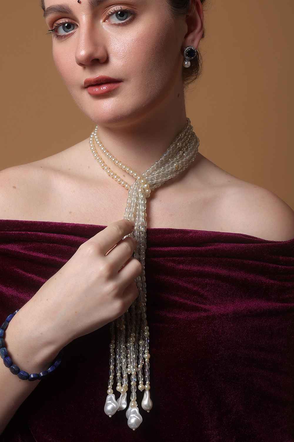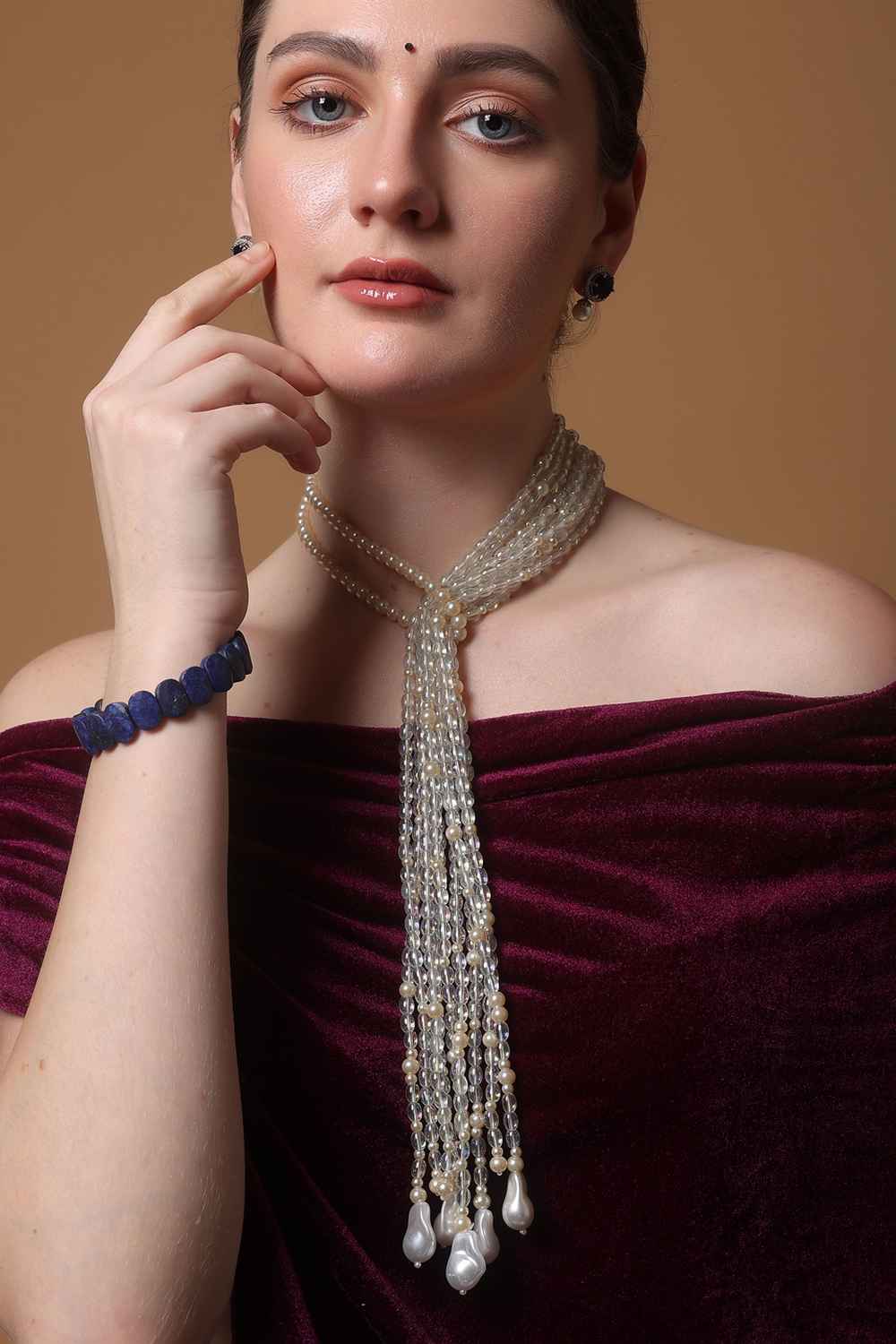 - Design: American Diamonds, Faux Blue Sapphire, Natural Stones