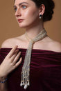 Unveil your inner diva with our Drop Earring a masterpiece that combines artistry and sophistication. Made from Alloy this jewelry is adorned with American Diamonds, Faux Blue Sapphire, Natural Stones ensuring a dazzling finish. Whether you're dressing up for Party or adding flair to casual wear, this piece is your ultimate style companion. Pair it with modern accessories to complete your outfit and make every moment sparkle
