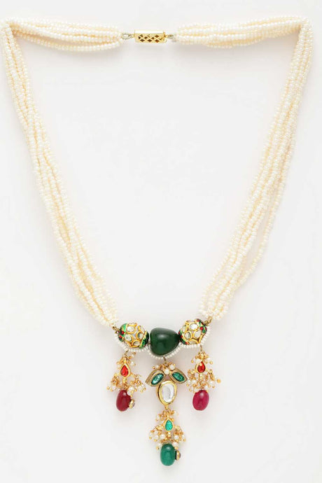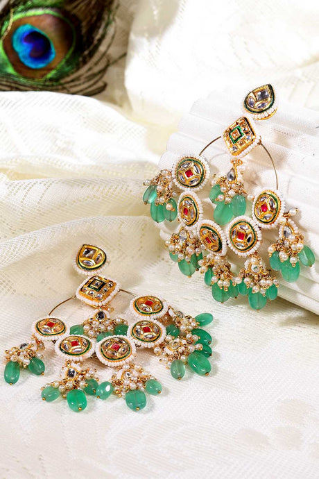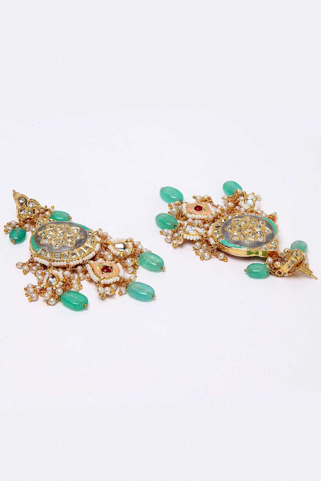Grey And Yellow Drop Earring With Kundan And Pearls