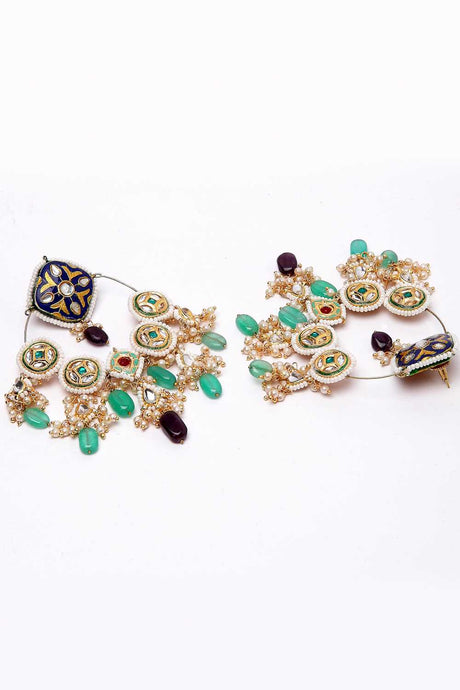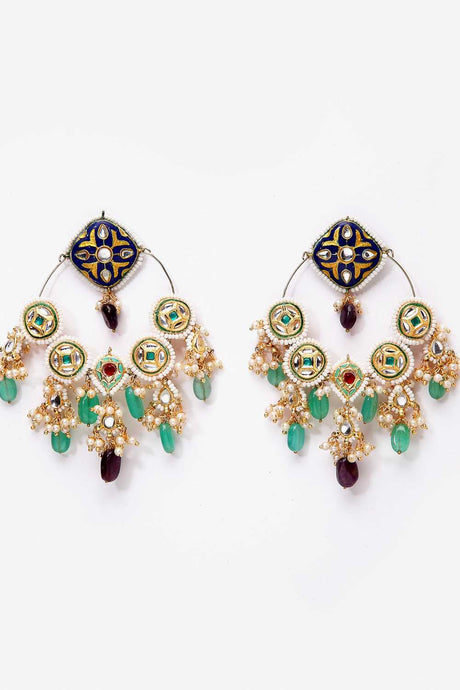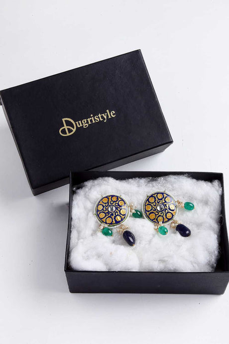 Blue And Yellow Drop Earring With Kundan And Pearls