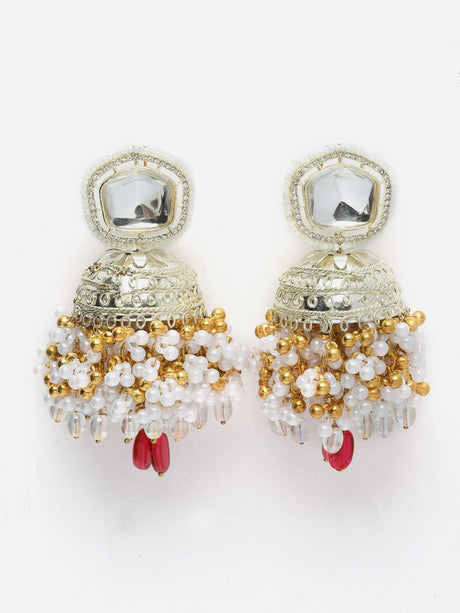 Silver And Red Jhumkas Earring With Kundan And American Diamonds