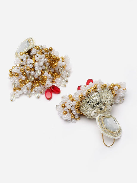 Red And Gold Adjustable Hathphool With Kundan And Pearls
