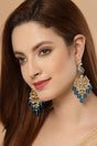 Blue And White Gold-Plated Kundan And Pearls Dangler Earring