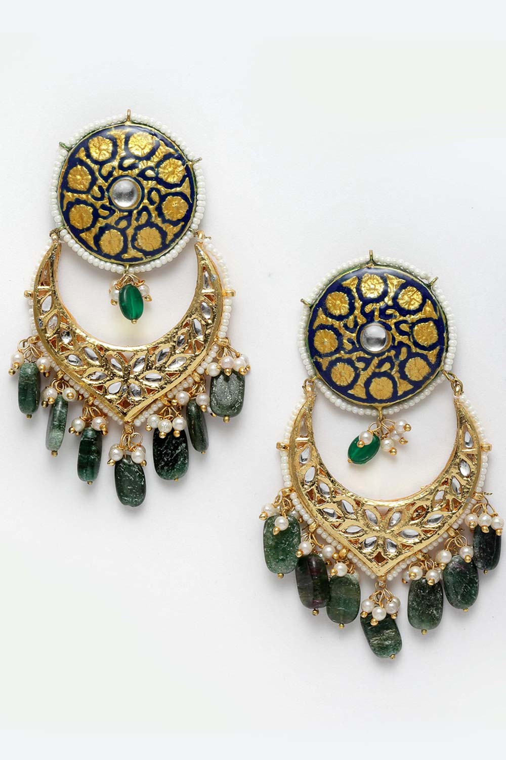Blue And White Gold-Plated Kundan And Pearls Dangler Earring