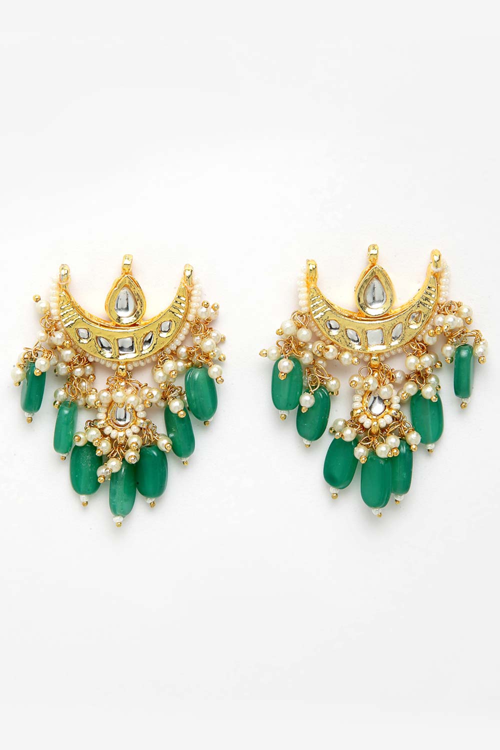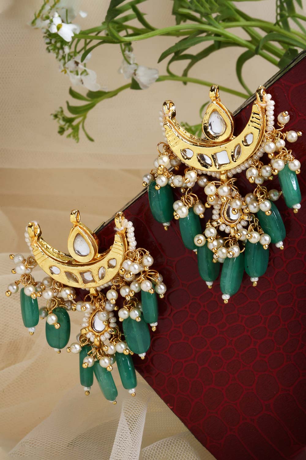 Green And White Gold-Plated Kundan And Pearls Dangler Earring