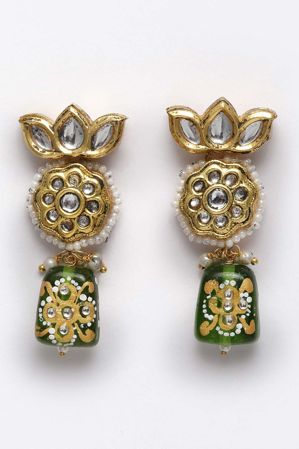 Green And White Gold-Plated Kundan And Pearls Dangler Earring