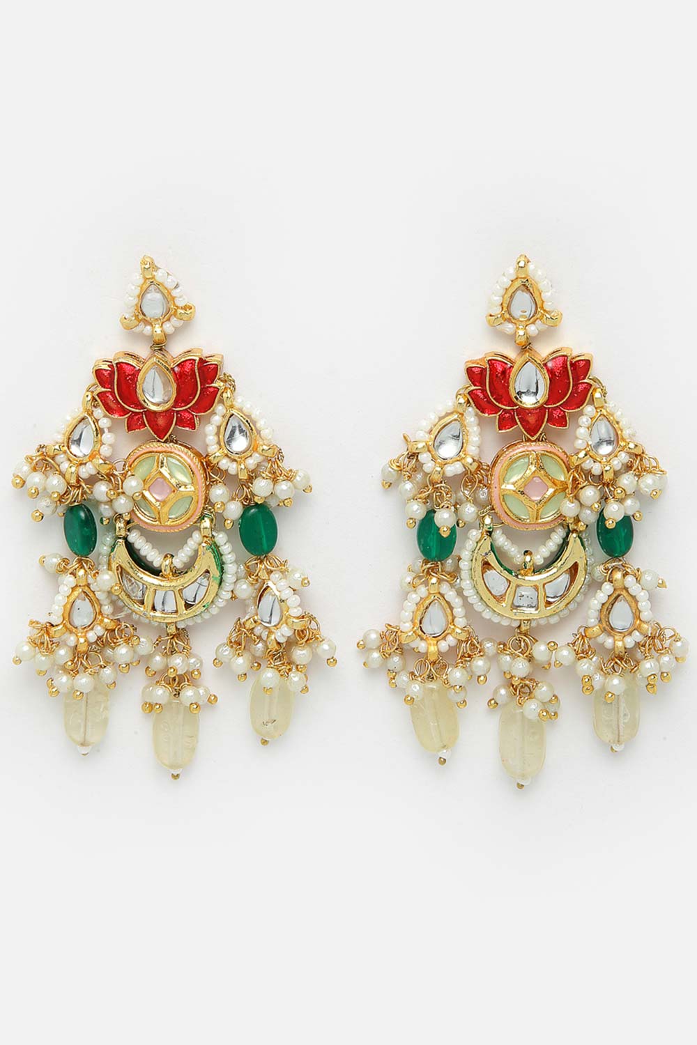 Multi-Color And White Gold-Plated Kundan And Pearls Dangler Earring