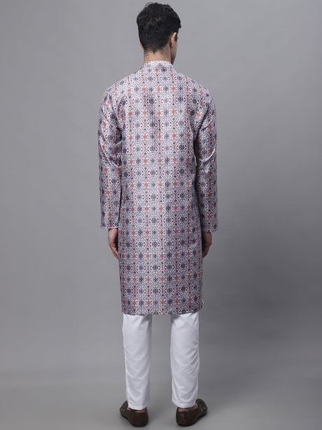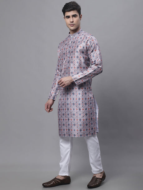 Men's Sky Blue And Multi Colored Embroidered Straight Kurta Pajama Set