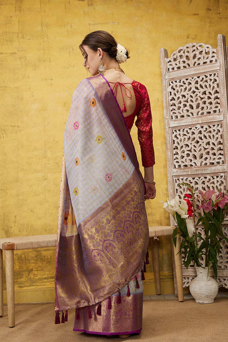Lavender Butterfly Net Cotton Thread Sequin Embroidery Lehenga Set