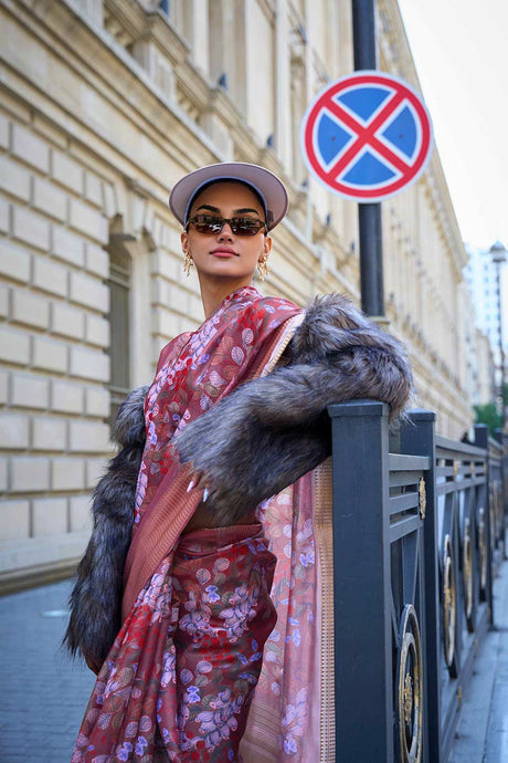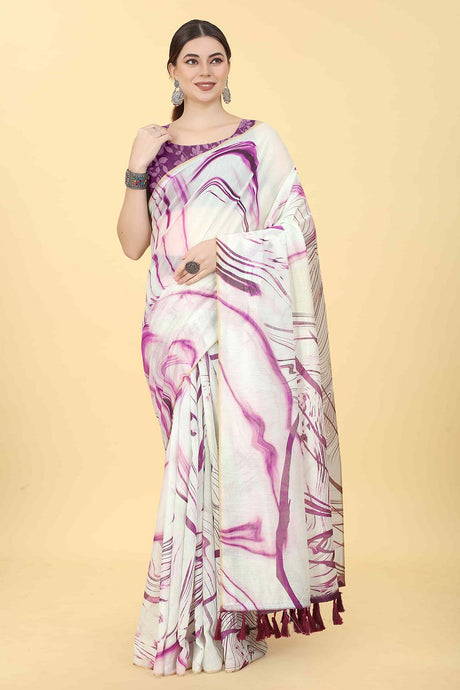 Mauve Cotton Printed Straight Kurti With White Solid Trouser