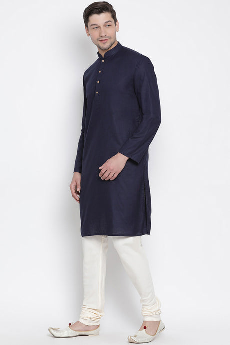 Men's Cotton Kurta Pajama Set In Navy Blue