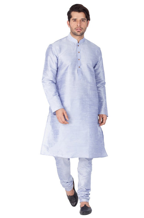 Men's Cotton Art Silk Solid Kurta And Pajama Set In Light Blue
