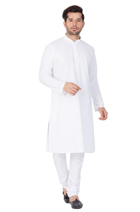 Men's Cotton Solid Kurta Pajama And Dupatta Set In White