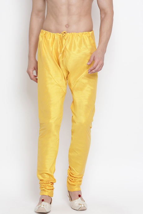 Men's Cotton Art Silk Solid Kurta And Pajama Set In Gold