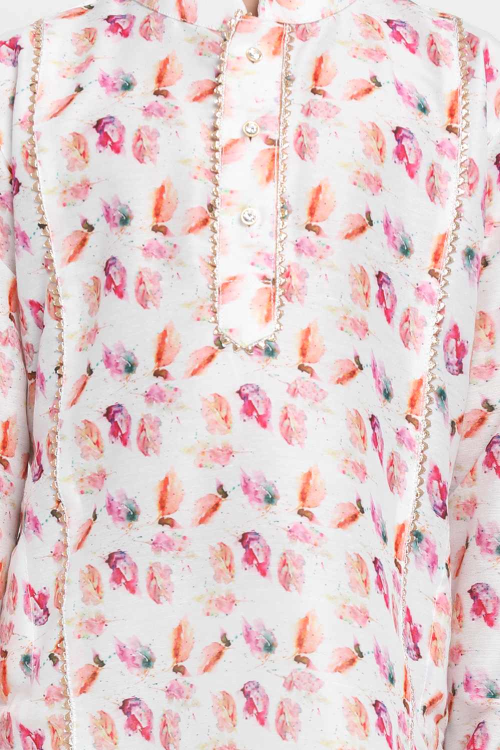 Boy's Blended Cotton Multicolor Kurta Set In White