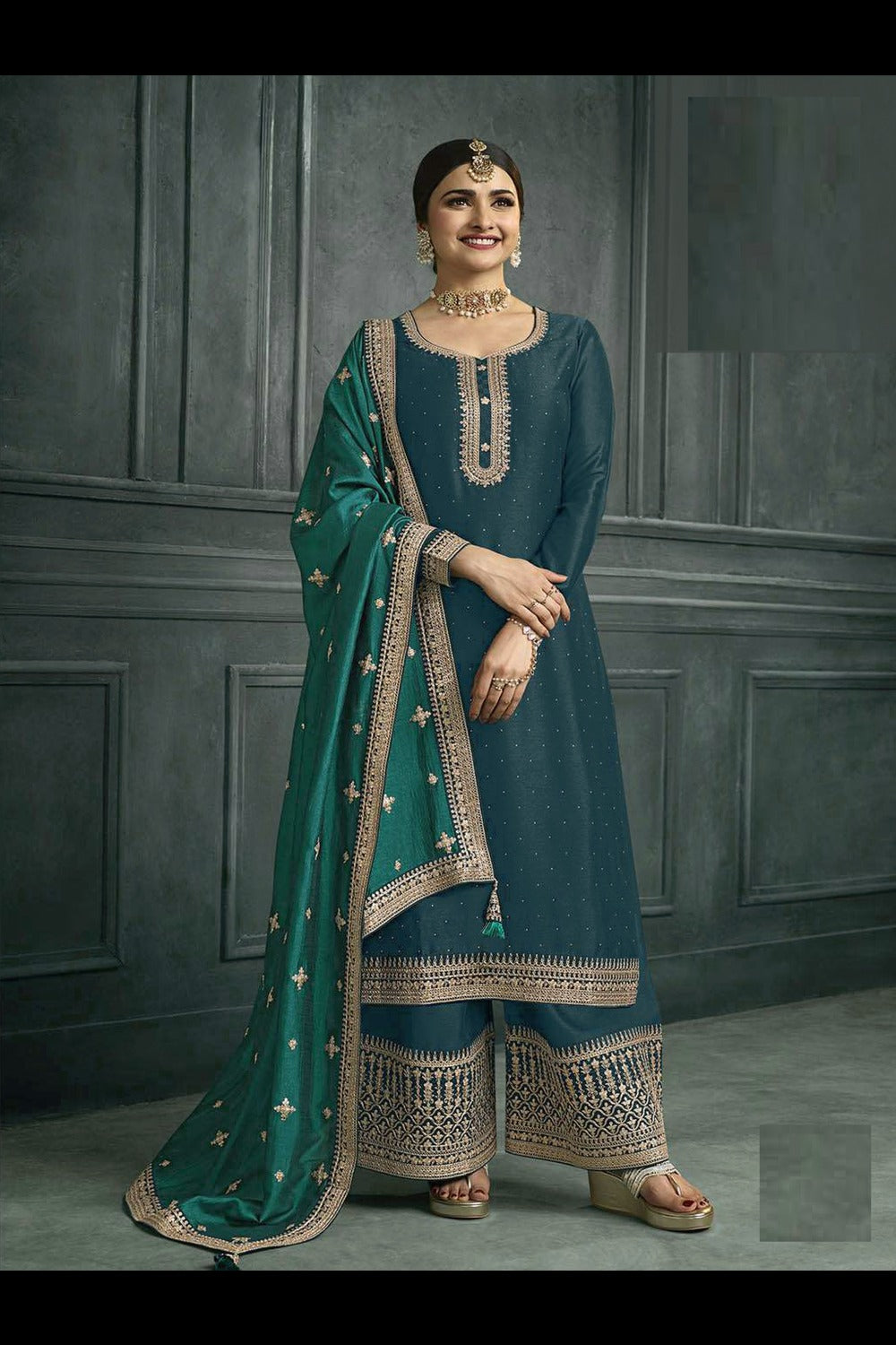 Aqua Blue Georgette Silk Embroidered Palazzo Suit