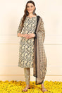 Black Pure Cotton Floral Printed Straight Cut Suit Set