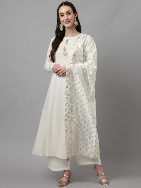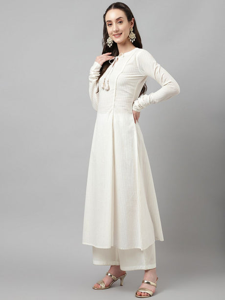 White Cotton Printed Anarkali Suit Set