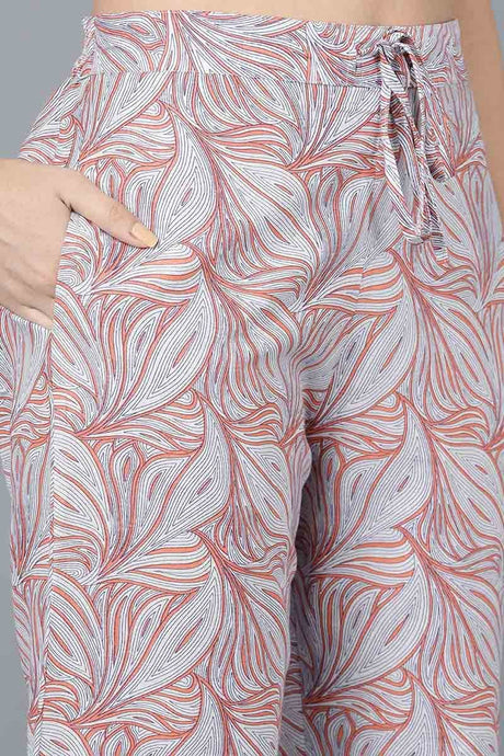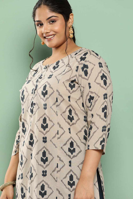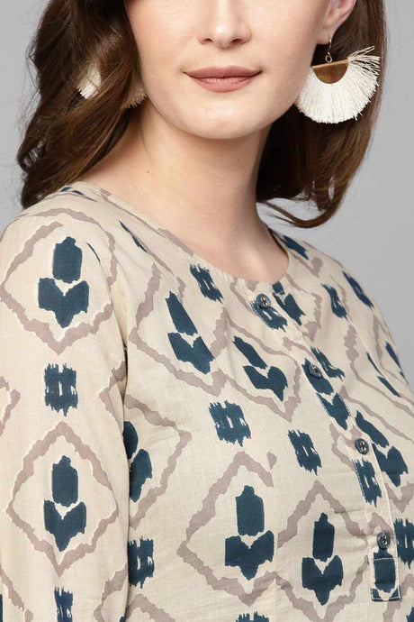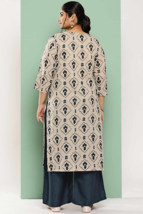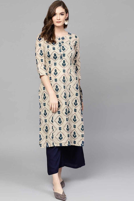 Beige Printed Cotton Kurti Palazzo Set