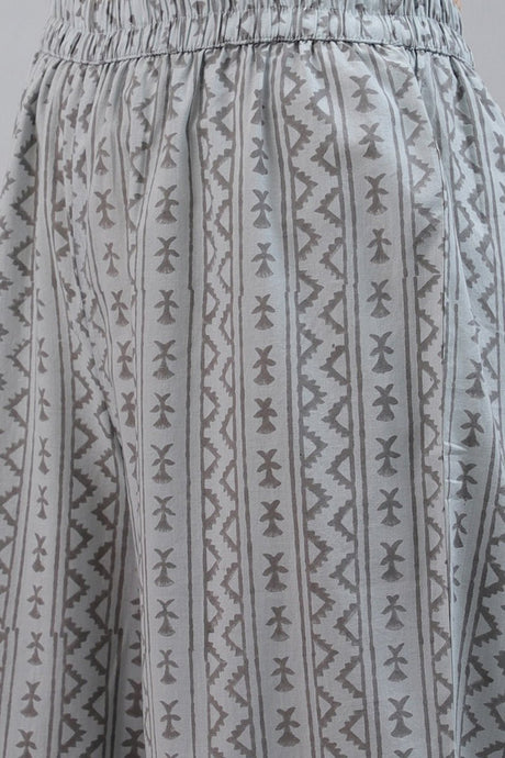 Cotton Grey Paisley Printed Straight Kurti Palazzo Dupatta Set