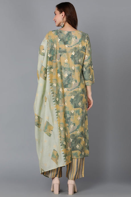 Mustard Silk Blend Straight Kurti Palazzo With Dupatta