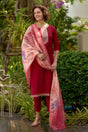 Maroon Embroidered Viscose Rayon Kurti Pant Set