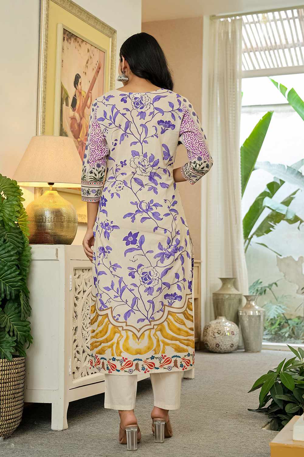Stay stylish and comfortable with our Kurti Pant Set designed for all-day elegance. Made with Cotton this set is perfect for easy movement and timeless appeal. The beautiful and intricate Floral Print elevates its design for Casual or daily wear, this kurti set is your go-to outfit. Pair it with elegant earrings and kolhapuri sandals or heels for a traditional look or wedges for a modern edge
