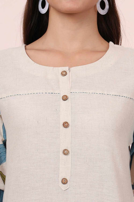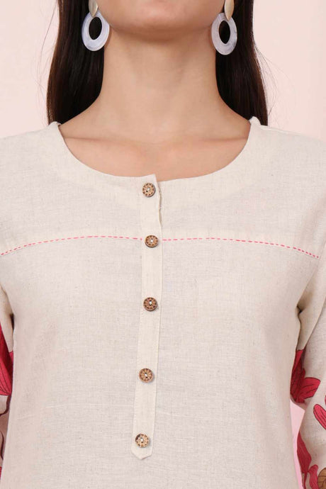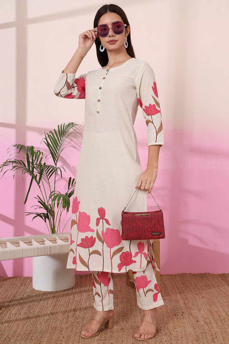 Off White Embroidered Chanderi Silk Kurti Pant Set