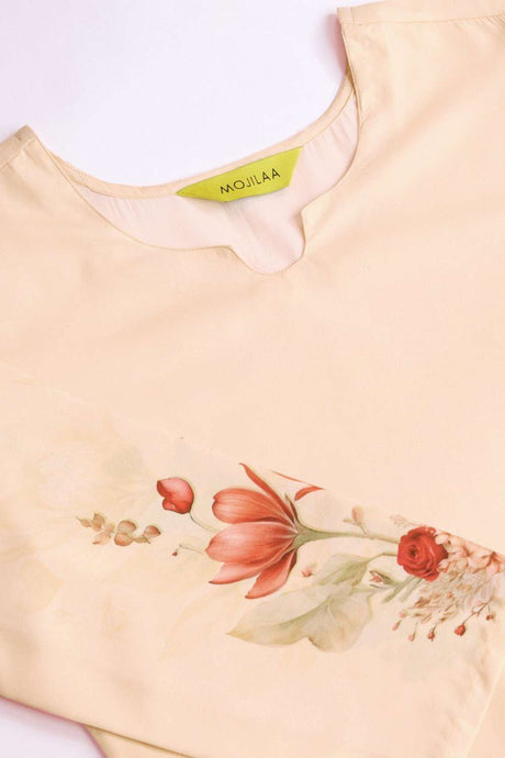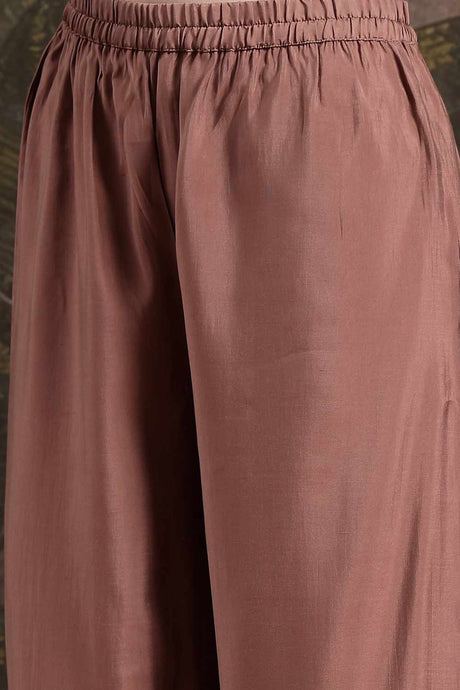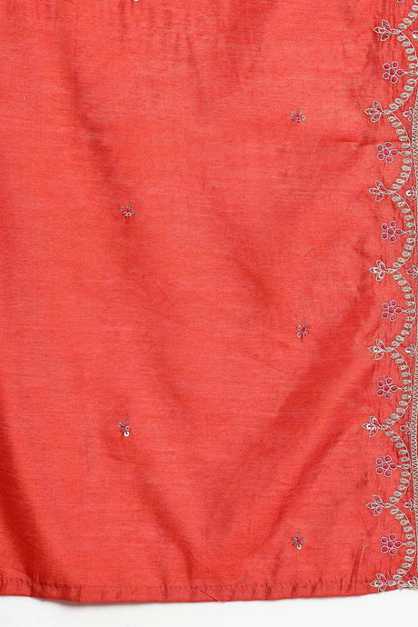 Peach Embroidered Viscose Silk Kurti Pant Set