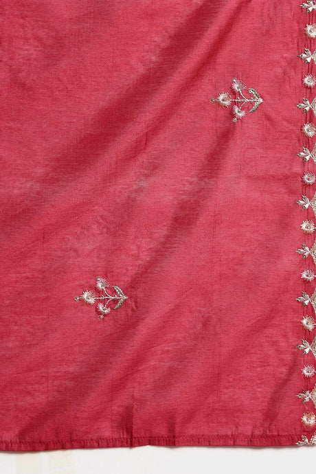 Peach Embroidered Chanderi Silk Kurti Pant Set