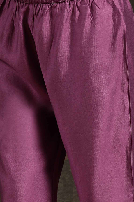 Maroon Embroidered Viscose Rayon Kurti Pant Set
