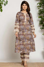 Beige Ethnic Motifs Printed Cotton Kurti Pant Set