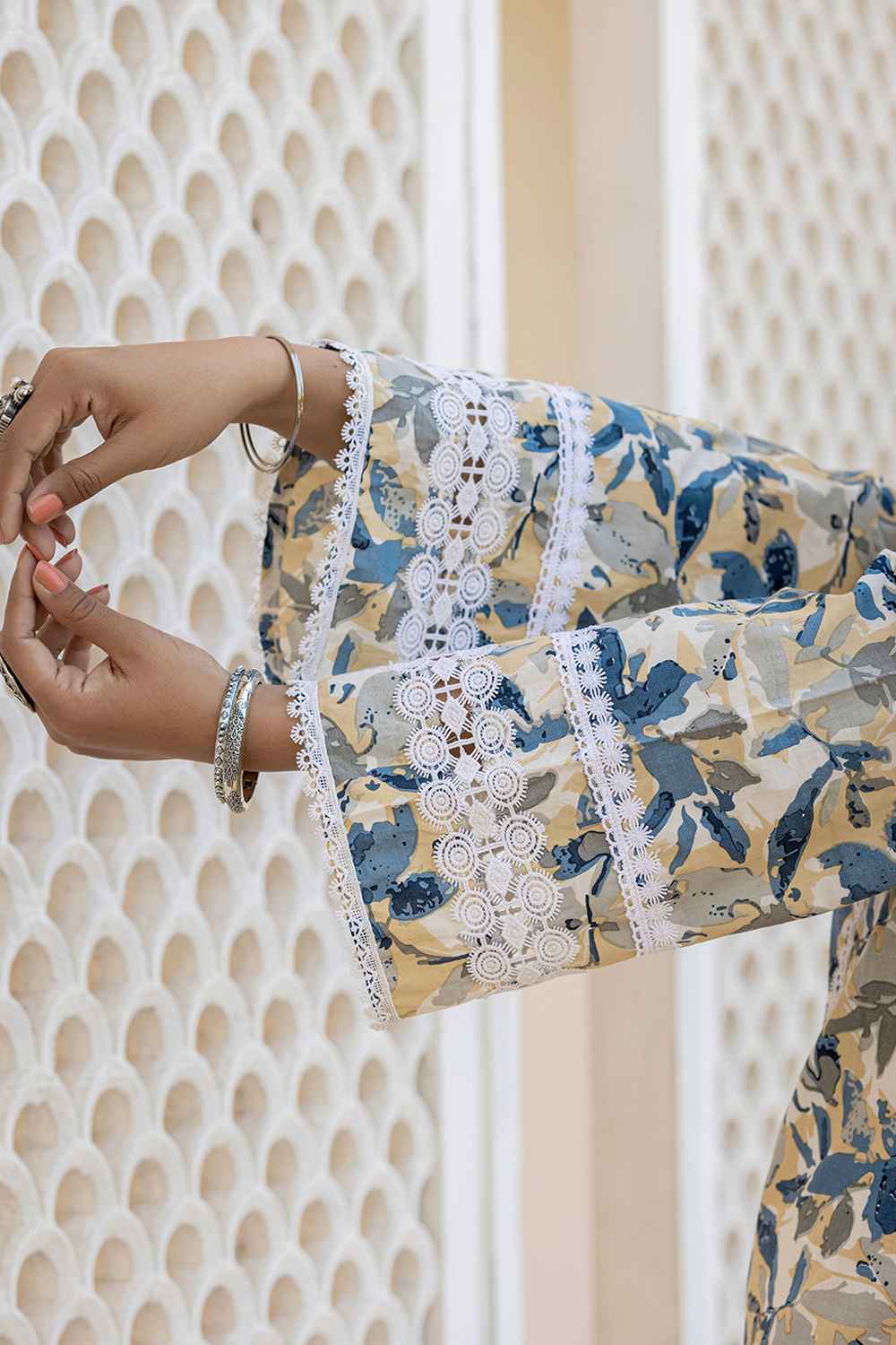 Stay stylish and comfortable with our Kurti Pant Sets designed for all-day elegance. Made with Pure Cotton this set is perfect for easy movement and timeless appeal. The beautiful Gometric Print and intricate Lace Work elevate its design for casual or daily wear, this Kurti Pant Set is your go-to outfit. Pair it with elegant earrings and kolhapuri sandals or a heels for a traditional look or wedges for a modern edge.