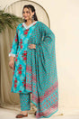 Blue Floral Printed Pure Cotton Kurti Pant Set