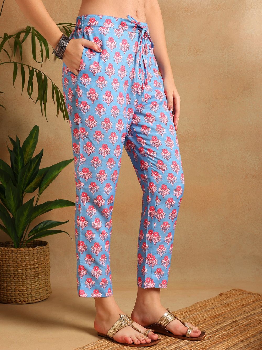 Blue Rayon Blend Floral Printed Straight Kurti Pants With Dupatta