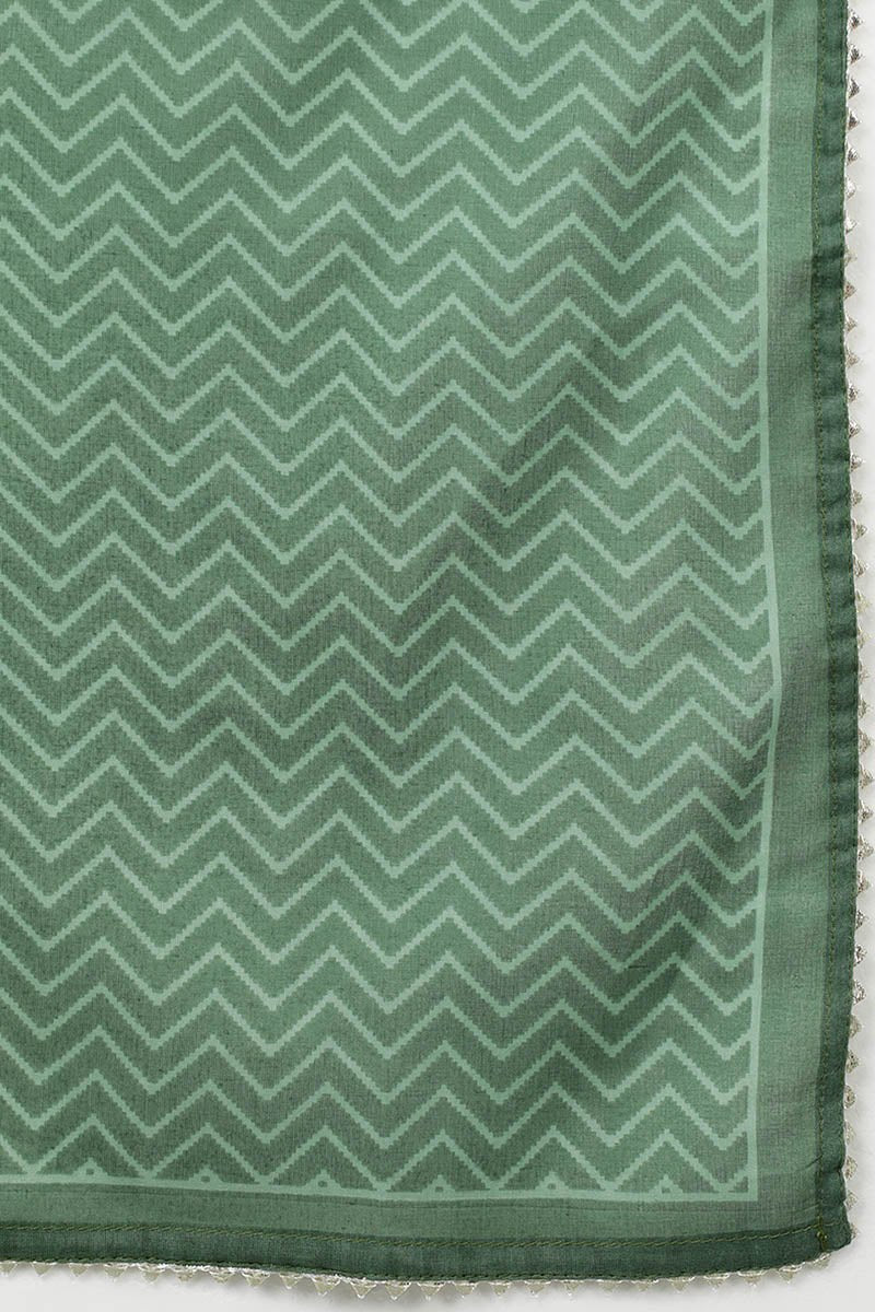 Green Cotton Gotta Patti Straight Suit Set