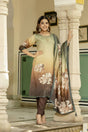 Green Floral Printed Silk Kurti Pant Set (ACA6944)
