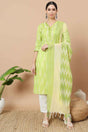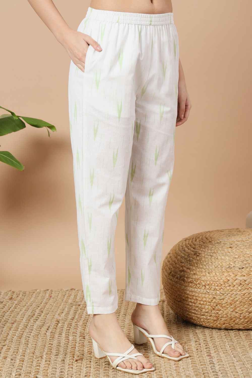 Green Ikat Print Pure Cotton Kurti Pant Set
