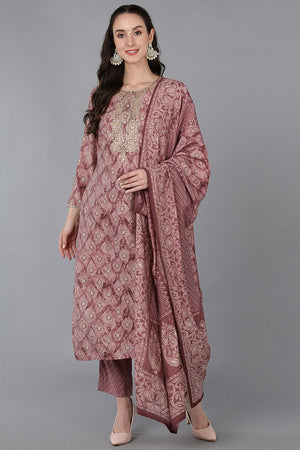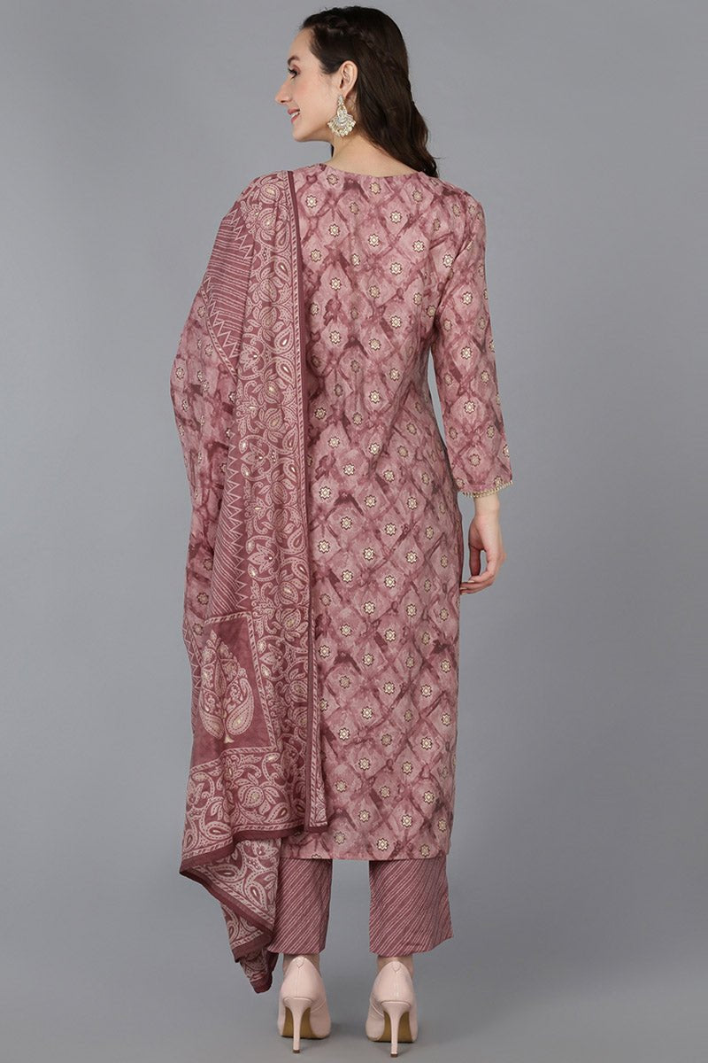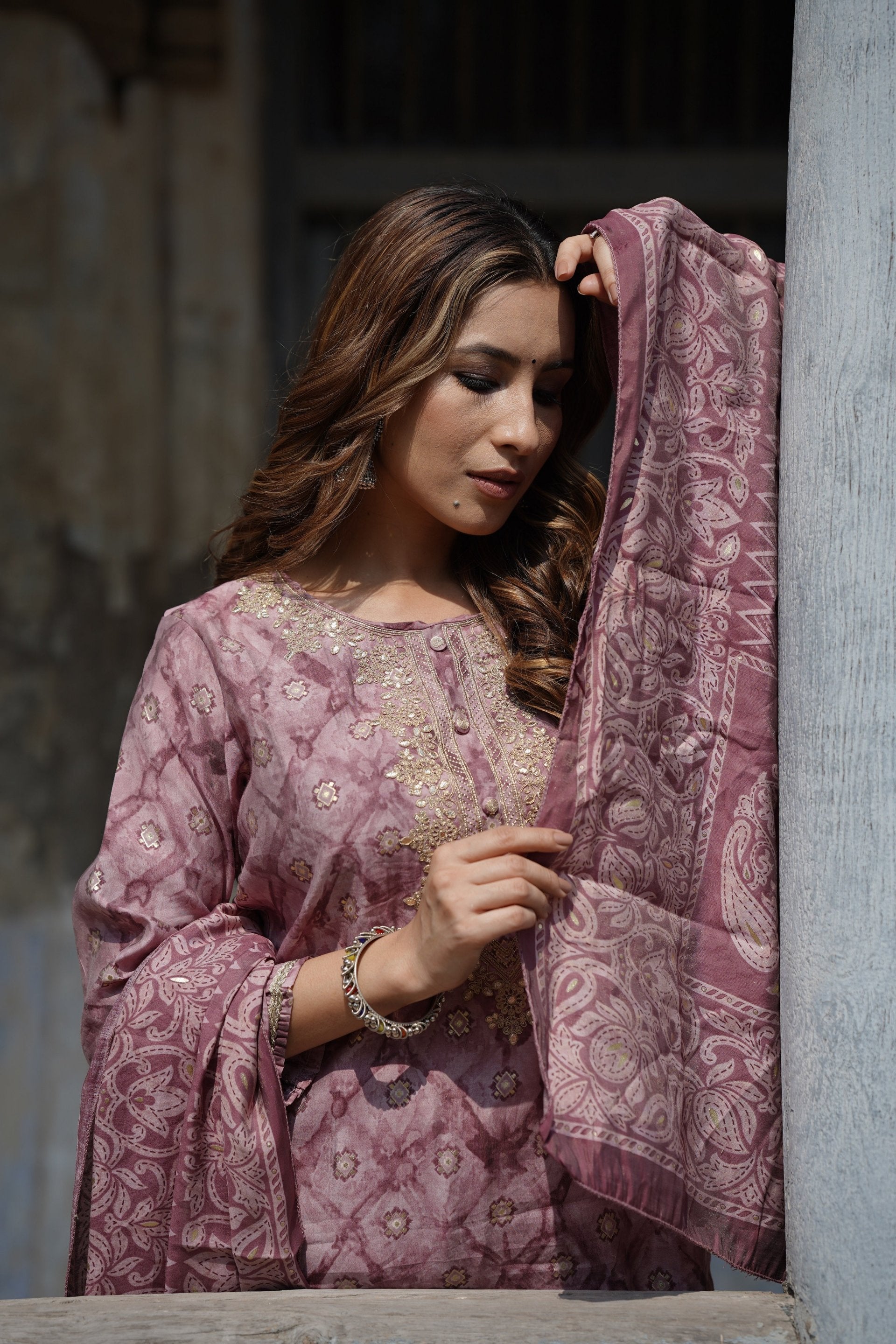 Mauve Silk Blend Ombre Straight Kurti Pant Set