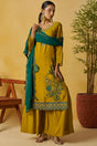 Mustard Floral Embroidered Organza Kurti Palazzo Set