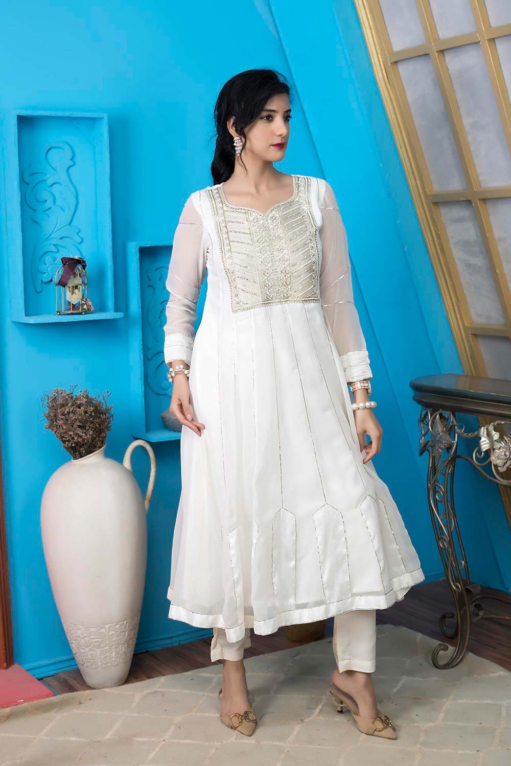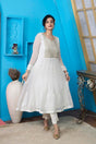 The Off-White Embroidered Georgette Anarkali Kurti is a timeless piece that effortlessly combines tradition with modern flair. Made from lightweight georgette, it offers a graceful flow and comfort, perfect for any occasion. The soft off-white color serves as a versatile canvas, beautifully accentuated by intricate embroidery that adds a touch of elegance to the neckline and hem.