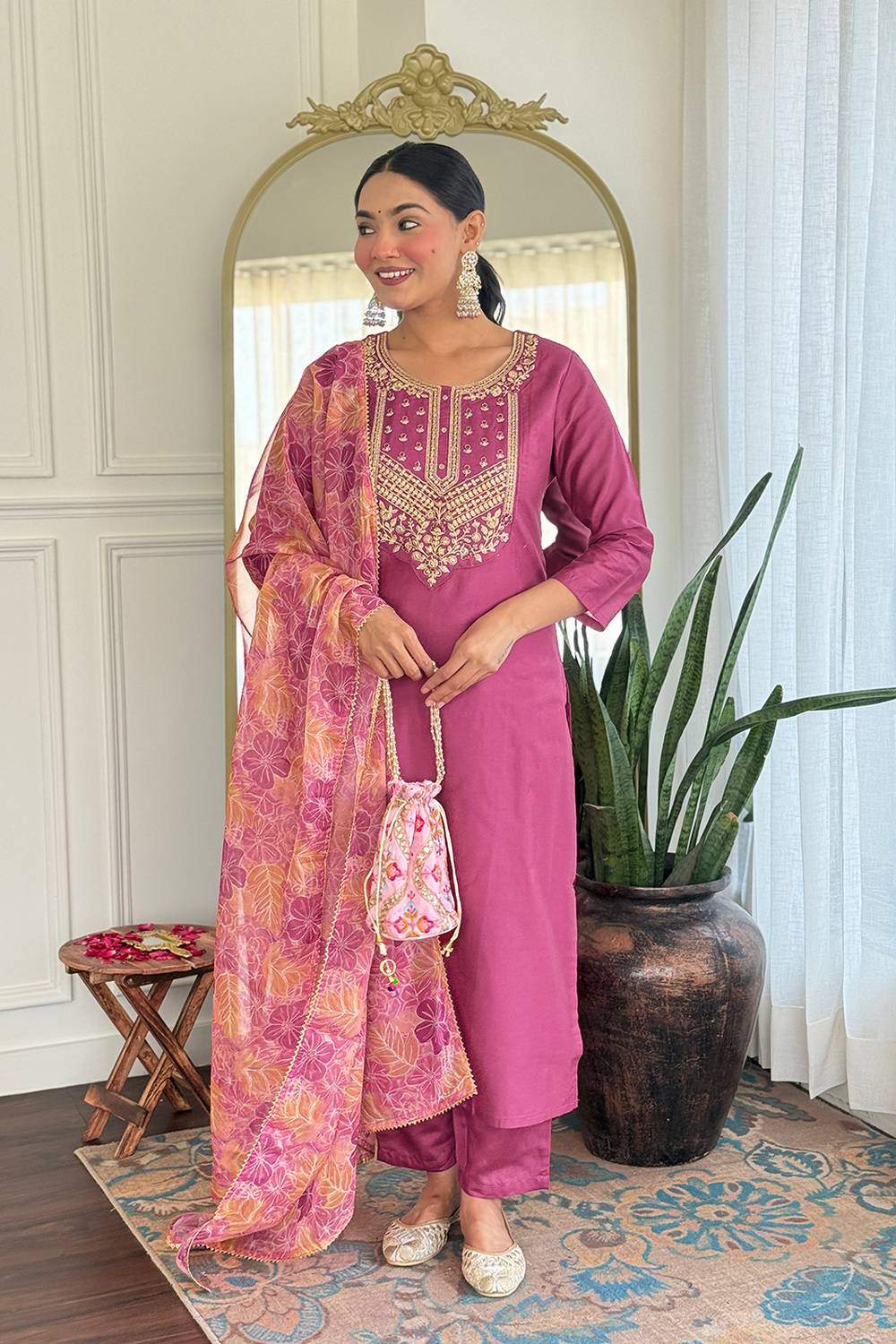 Step into effortless style with our Kurti Pant Set crafted for the modern woman who cherishes tradition. Made from soft Rayon it keeps you comfortable all day long. The Embroidered design lends a touch of sophistication to your outfit. Perfect for Festive this Kurti Pant Set is a must-have for versatile styling options. Style it with minimalistic accessories and flats for a casual look or jewelry and heels for special events